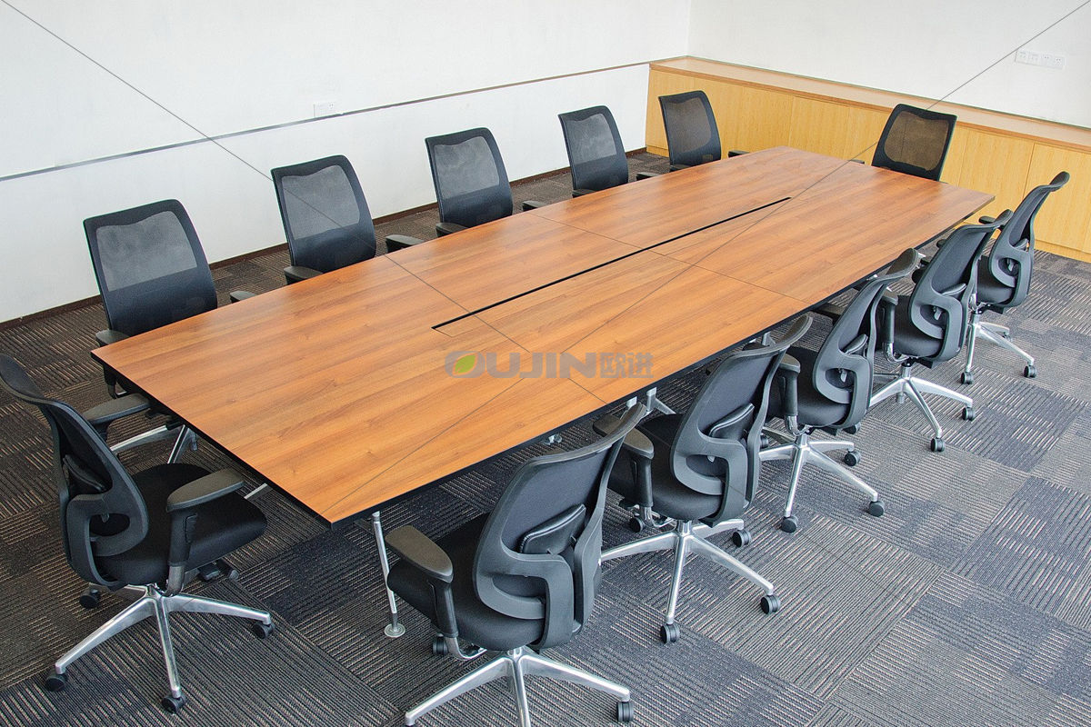 會(huì)議桌采用木紋色配以簡(jiǎn)潔的鋼腳臺(tái)架,在視覺(jué)上如同顯得非常簡(jiǎn)約而不簡(jiǎn)單。這樣的設(shè)計(jì)意在用現(xiàn)代的辦公家具造就一個(gè)舒適活躍的會(huì)議氛圍,鼓勵(lì)大家更多的遇見(jiàn)、交流與碰撞。